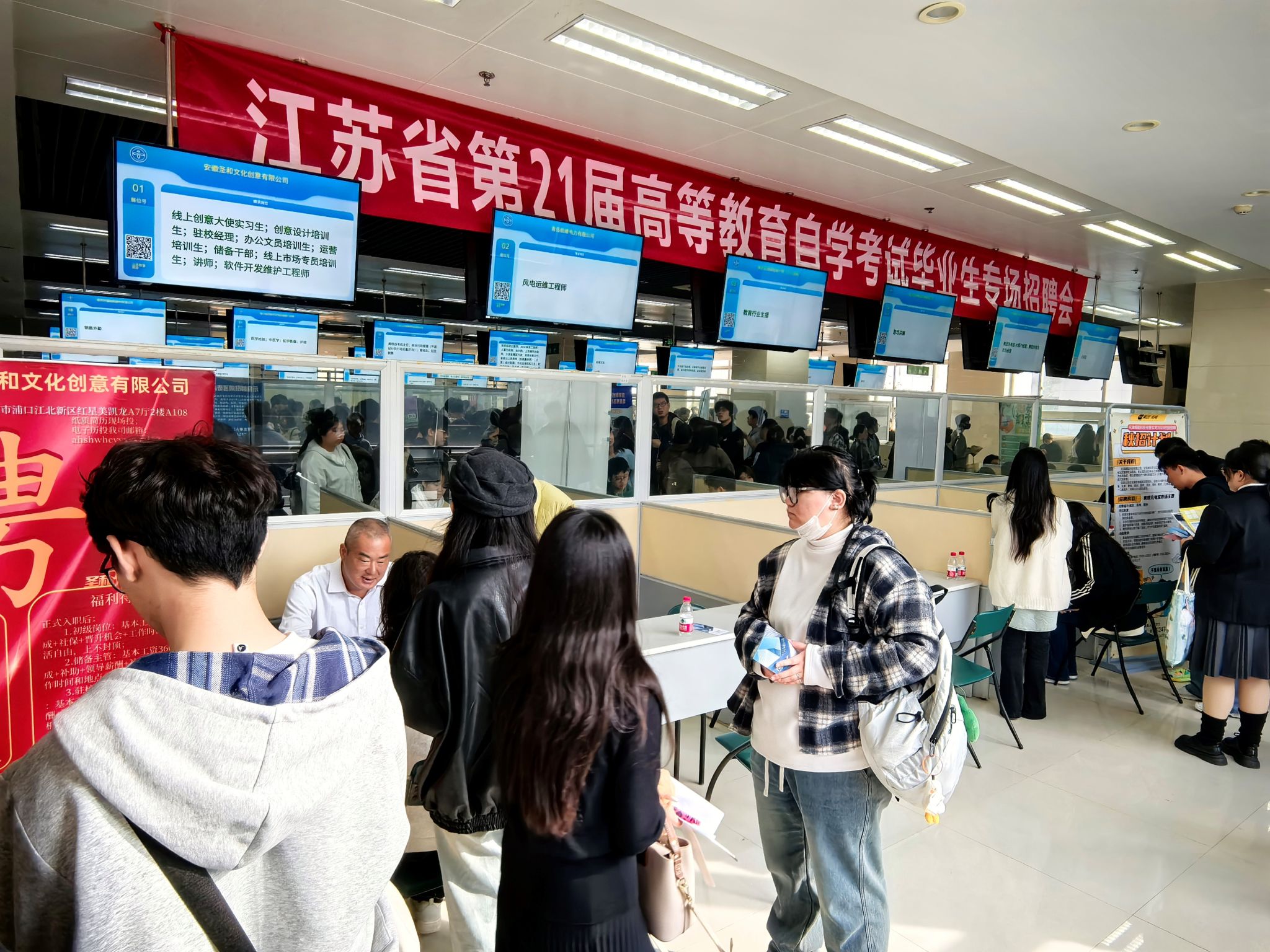 11月1日,由江苏省教育考试院、江苏省高校招生就业指导服务中心合作举办的“江苏省第21届高等教育自学考试毕业生专场招聘会”在南京召开。