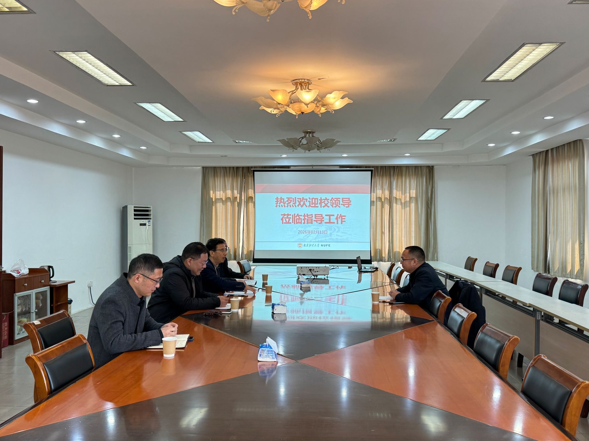 慰问结束后,叶林祥副校长认真听取了继续教育学院目前各项工作取得成效以及2026年工作重点和业务规划。他对一年来学院扎实做好校区管理和服务保障工作给予充分肯定,并就继续做好校区日常管理、完善相关工作预案,进一步提升学院主责主业等方面提出指导意见。