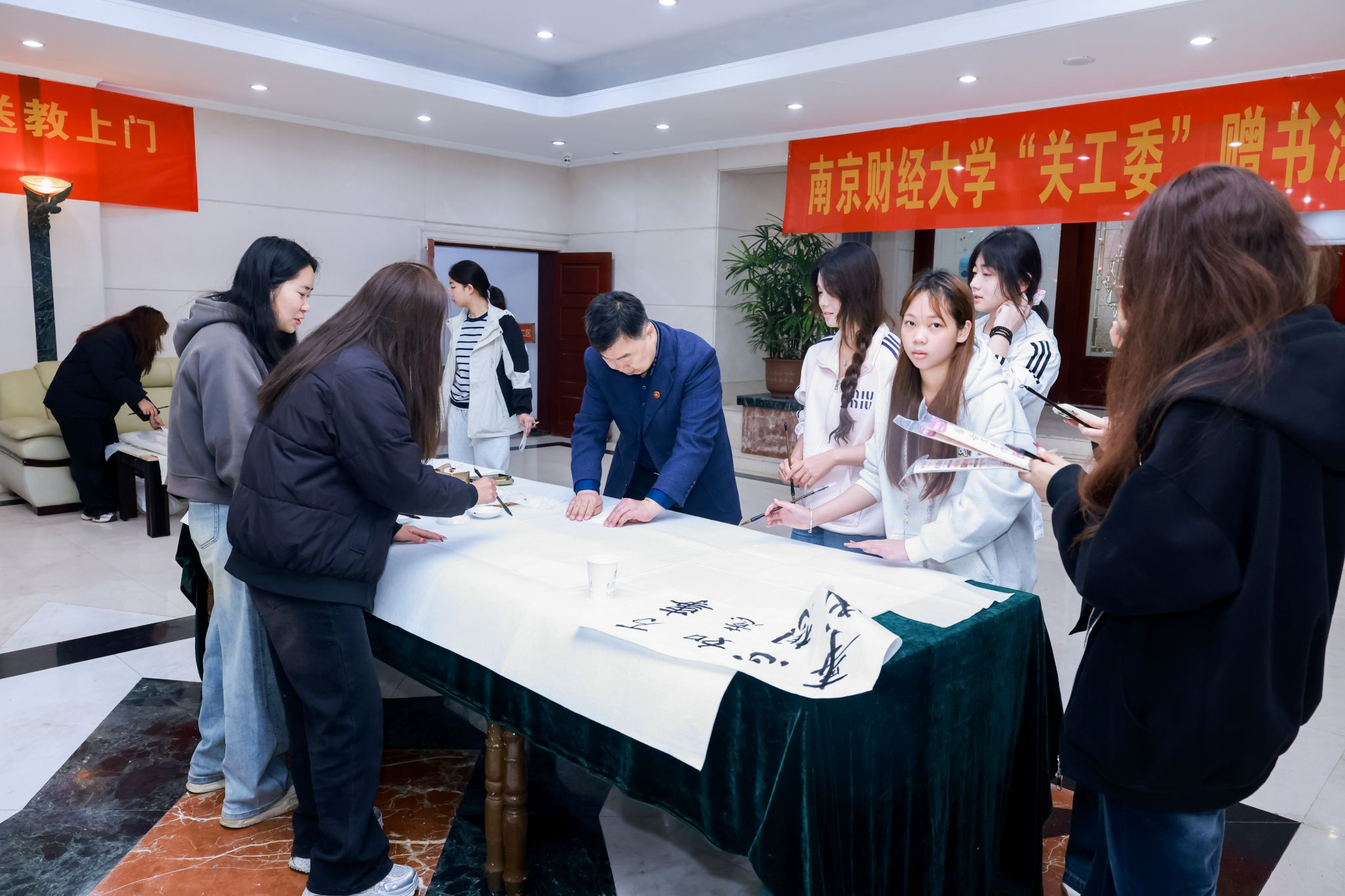活动最后,校“关工委”向同学们赠书法作品、送真挚祝福。一幅幅笔墨隽永、寓意美好的书法作品,既饱含着老同志们对青年学子的殷切期望与美好祝愿,也承载着深厚的文化底蕴与精神力量。老同志们充分发挥自身专业特长与育人优势,以笔墨书香浸润心灵传递温暖关怀,深受师生欢迎。