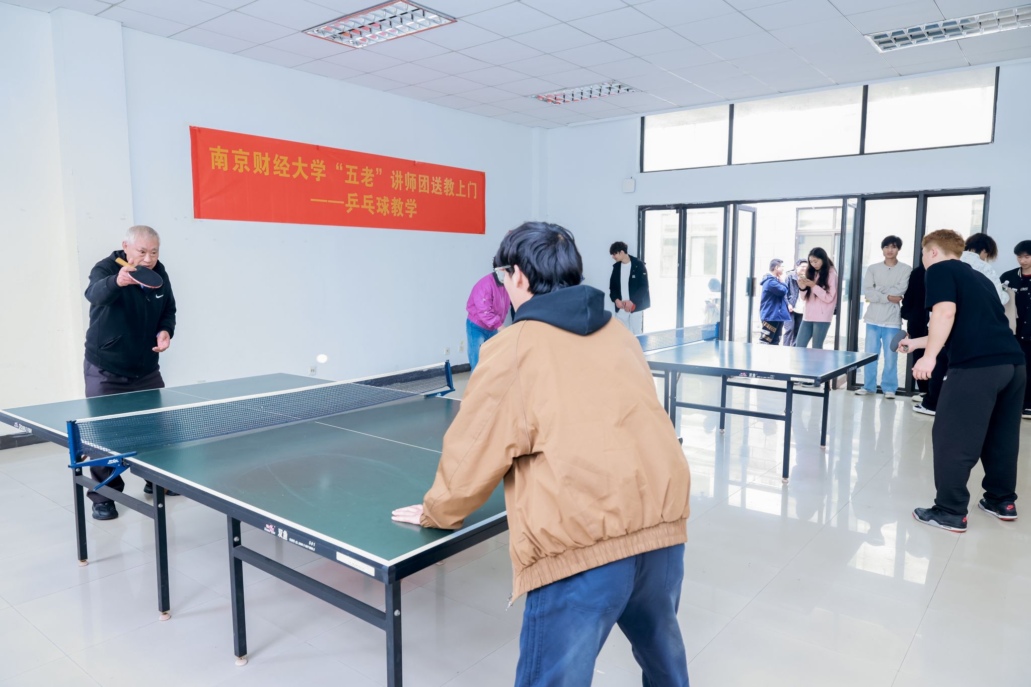 校“五老”讲师团成员陈久兵、奚宁老师带来乒乓球教学,活动中,两位老师耐心细致、示范规范,从握拍姿势、站姿站位、基本击球动作等基础要领逐一讲解,手把手指导同学们纠正动作、掌握技巧,引导学生感受乒乓球运动的节奏与乐趣。